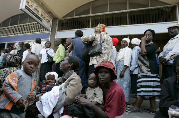 가난한 이들의 푼돈마저 위태롭다. 지난 9월30일 짐바브웨 수도 하라레의 한 은행 앞에서 예금을 인출하기 위해 사람들이 기다랗게 줄지어 서 있다.