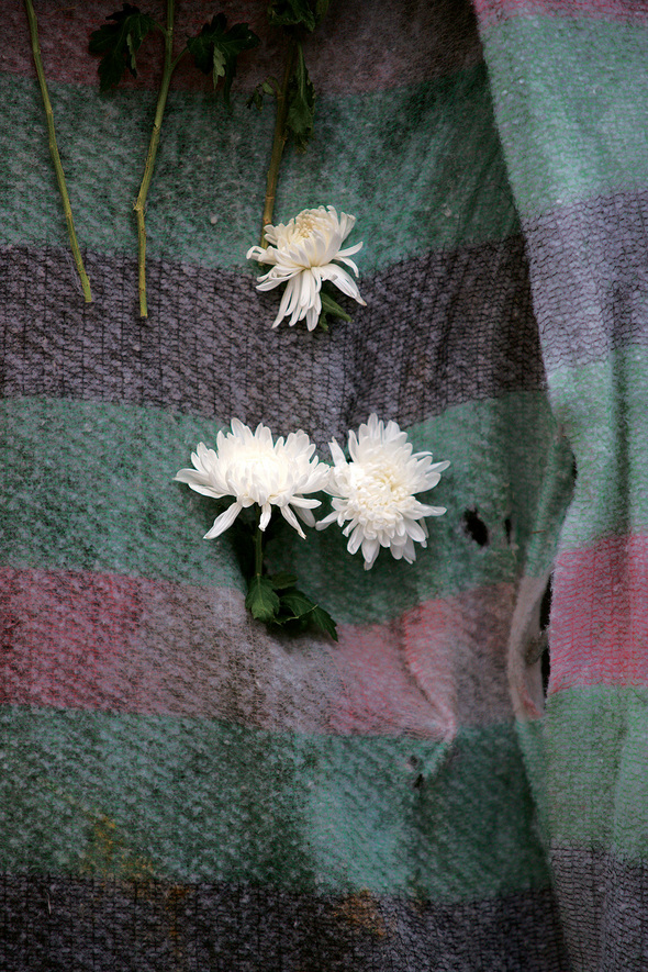 용산 재개발 지역을 감춘 가림막 위로 국화가 피었다. 가림막 안쪽에는 아직도 별을 헤는 난쟁이들이 있다.