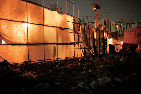 서울 강북에는 이렇게 거대한 가림막이 솟아 있는 곳이 수없이 많다. 성북, 왕십리, 마포, 용산…. 가림막은 비밀스럽게 뭔가를 준비하다가 마술처럼 최신식 아파트를 내보인다. 하지만 그 집들은 누구나 가질 수 있는 것이 아니다. 땅이 있어야 하고, 능수능란하게 조합을 운영해야 하며, 철거 깡패를 동원해 세입자들을 쫓아낼 정도로 용기(?)도 있어야 비로소 자신의 것이 된다. 바로 그때까지 가림막이 필요하다.
