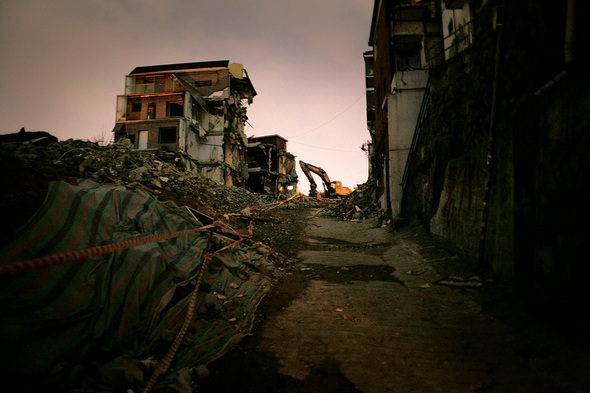 가림막 안으로 들어가면 딴 세상이 펼쳐진다. 마치 이스라엘의 거대한 장벽을 통과해 팔레스타인 가자지구로 들어온 느낌이다. 건물들은 폭격을 맞은 듯 처참히 부서져 있고, 멀쩡해 보이는 건물에는 붉은색 스프레이로 “빨리 꺼져라! 죽고 싶지 않으면” 등 흉측한 낙서들이 쓰여 있다. 용역업체 직원들이 남아 있던 세입자 등에게 이주하라고 협박한 흔적들이다. 주변에서는 쿵쿵거리며 포클레인들이 건물을 통째로 쓰러뜨리고, 고물상들은 쓸 만한 알루미늄 새시를 뜯어낸다.