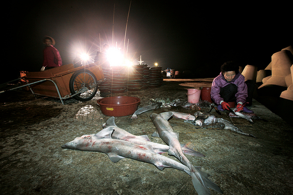 한성호가 늦은 밤 홍도항에 도착했다. 이상수 선장의 어머니가 한켠에서 ‘잡어’인 민어와 상어 등을 손질하고 있다.