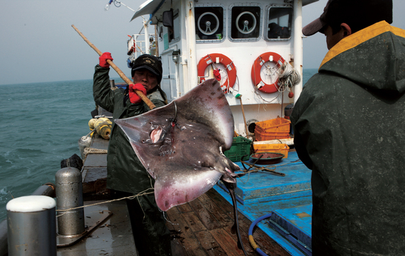 홍어잡이를 따라나섰다. 한성호는 주낙 방식을 고집한다. 그물보다는 낚시로 잡아야 고기 상태가 좋기 때문이다. 조업은 투망 위치에 도착해 300개나 돼는 주낙 바구니에서 주낙을 내리고, 이전 조업 때 투망한 장소로 이동해 주낙을 끌어올리는 양망을 하는 식이다.