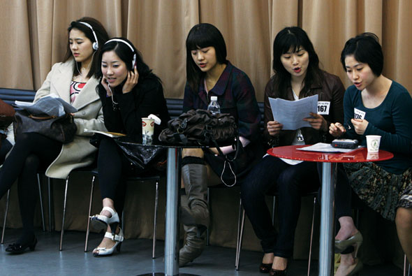 1·2차 오디션에서 여주인공 ‘샤페이’ 역의 후보로 뽑힌 참가자들이 4월1일 안무 오디션을 받고 있다.