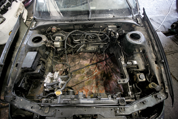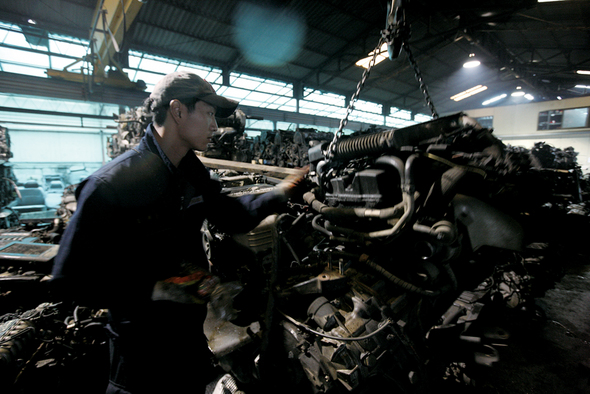 부품 중에 값나가는 자동차 엔진만 따로 모아 보관해둔다.