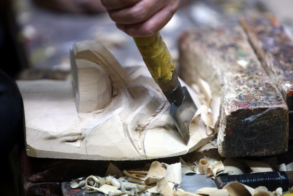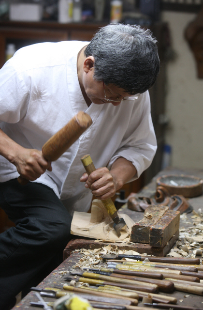 “제가 하는 건 복원도 아니고 보존도 아닙니다. 전 단순히 모조하는 사람이죠. 30년을 똑같이 해도 뜻대로 안 되는 거 같아요.” 10년 된 오리나무를 파는 그의 이마에 땀이 맺힌다. 최고의 경지에 오른 장인의 겸손이 힘을 주는 그의 손끝에서 조각칼로 전해진다.