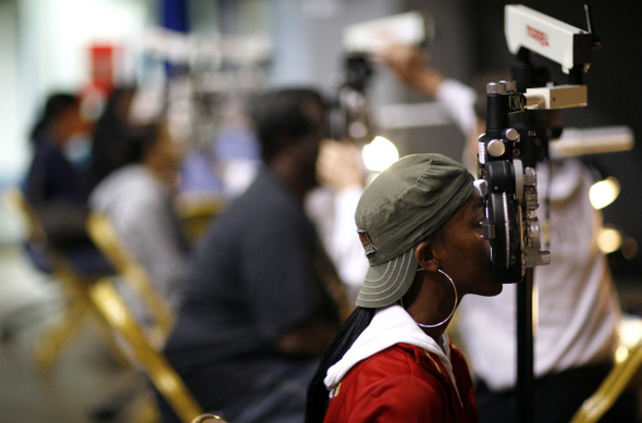 환자들이 8월11일 안과 검진을 받고 있다. 사진 REUTERS MARIO AUZUONI