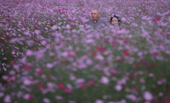 해 질 녘에 걷는 코스모스 사잇길은 가을을 대표하는 산책로다. 서울 한강시민공원 이촌지구.