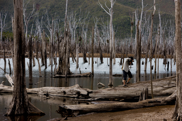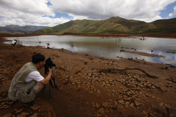 류주영씨가 10월1일 야떼 지역의 ‘물에 잠긴 숲’을 카메라에 담고 있다.