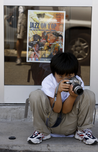 이창민(9)군이 9월29일 누메아의 F.O.L 전망대 앞에 쪼그리고 앉아 사진을 찍고 있다.