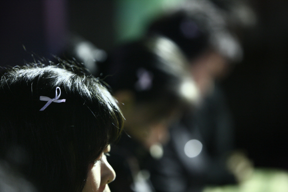 10월20일 서울 용산 참사 현장에서 천주교정의구현전국사제단의 집도로 추모미사가 열렸다. 미사에 참가한 유족의 머리에 달린 흰색 근조 리본이 시선을 끈다.