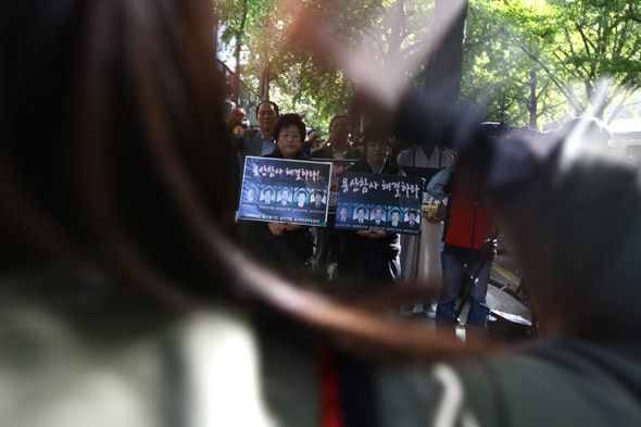 10월20일 정부종합청사 후문에서 ‘용역깡패 폭력경찰 추방의 날’ 선포 집회에 참가한 유족들.