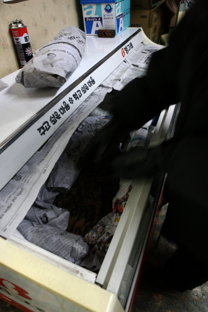 한국조류보호협회 군산지부 사무실 냉장고에 죽은 채 발견된 천연기념물 새들이 가득 차 있다.