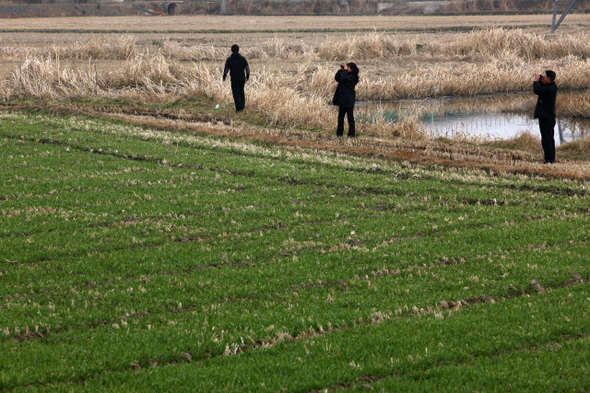 지난 12월2일 오후 군산 내흥동 농지에서 한국조류보호협회 회원들이 감시 활동을 벌이고 있다. 매년 이곳에서 독극물로 인한 사고가 발생하고 있다.