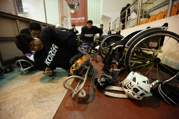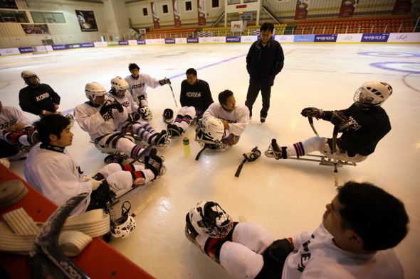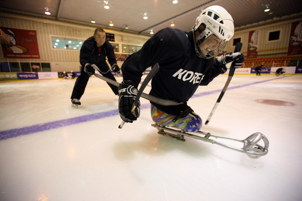 ‘스피드’란 단어는 그들과는 거리가 멀다고 생각했다. ‘격렬하게 몸싸움하다’ 역시 그들에겐 좀처럼 어울리지 않는 문장이라고 생각하고 있었다. 편견이란 참 많은 것들을 그들과 거리 두게 놓았나 보다. ‘아이스슬레지하키’(Ice Sledge Hockey)는 장애인을 위한 아이스하키로, 두 발 대신 ‘슬레지’라고 불리는 썰매를 타고 하는 경기다. 1999년 우리나라에 처음 소개됐고, 2000년 정식 팀이 창단됐으며, 2006년 실업팀이 창단돼 현재까지 3개 팀 40여 명 정도가 리그전을 벌여왔다. 그들이 올해 우리나라 최초로 2010 밴쿠버 장애인 동계올림픽 출전권을 따냈다. 그들은 10여 년 동안 치열하게 얼음판 위에서 치고 달리고 있었지만 ‘최초’라는 동계올림픽 출전권을 따내고 나서야 그들을 찾아갔으니 우리의 눈은 참 이기적이다.