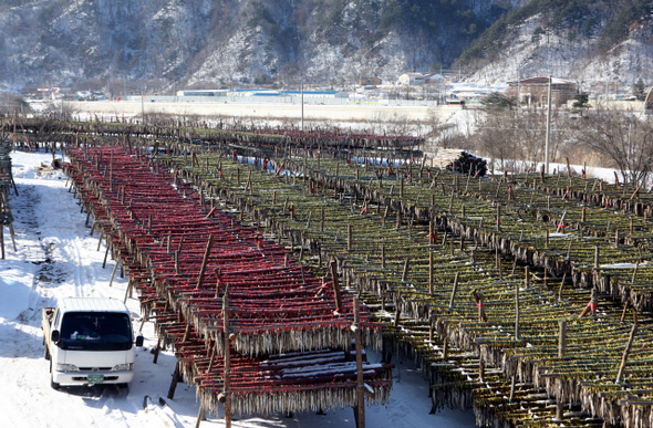 우리나라 황태 70% 생산하는 강원 인제군 용대리 덕장들…