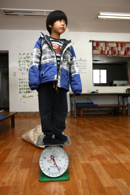 유치원생인 막내 윤태가 저울에 올라가 자기 몸무게를 알려달라고 한다.