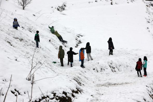 아이들이 ‘노래샘’과 함께 철딱서니학교 옆 언덕에서 눈싸움을 하고 있다. 이곳엔 4일간 쉬지 않고 눈이 내렸다.