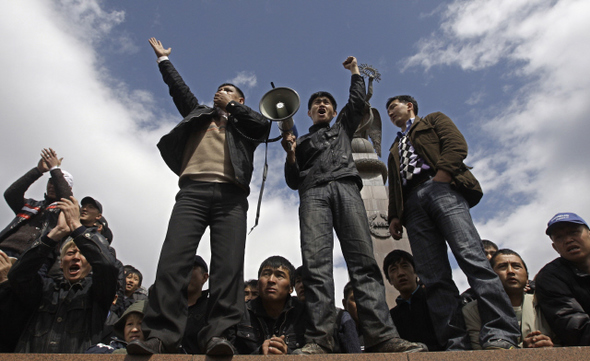 키르기스스탄 반정부 시위대가 수도 비슈케크의 중앙광장에서 4월8일(현지시각) 시위를 벌이고 있다. 쿠르만베크 바키예프 대통령이 쫓겨난 다음날이다. 이날 야당은 과도정부를 수립해 6개월간의 준비 과정을 거쳐 새 정부를 세우기로 했다고 밝혔다. 연합 AP