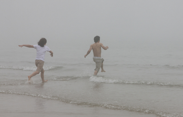 아직은 이른 여름. 본격적인 피서철이 시작되려면 한 달 가까이 남았지만 서해 바다에는 피서객들이 제법 있었다. 아직 무더위가 오지 않아서인지 낮과 밤, 물과 땅의 온도차 때문에 생긴 안개가 바다를 휘감는다. 손잡고 거닐던 연인이 모래사장 위에 둘의 이름을 새겨넣자 이를 시샘하는 파도가 달려들어 지워버린다. 바다로 뛰어든 친구가 뿌리는 물을 옷 입은 채 맞는 친구의 웃음소리가 허공으로 부서진다. 백사장에 돗자리를 깔고 회식하는 한 무리의 사람들 옆으로 먹을 걸 달라고 조르는 갈매기들이 줄을 선다. 모래로 집을 짓는 게 신기한 어린이는 손등 위로 쌓아놓은 모래를 연방 토닥거리며 노래를 부른다. 엄마·아빠의 손을 꼭 잡은 딸아이는 발가락을 파도에 살포시 밀어넣는다. 어쩌다 들어오는 손님이 반가운지 상인들도 인심이 후하다.