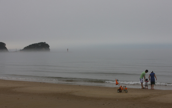 어느덧 안개는 더욱더 짙어졌다. 가까이 있는 섬과 등대가 안개에 휘감겨 있다. 시라도 한 수 읊고 싶을 정도로 제법 운치 있다. 한여름 성수기에는 보기 힘든 여유로운 바다, 이른 여름을 서둘러 온 피서객들의 몫이었다.