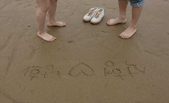 아직 차가운 기운이 도는 바닷물로 뛰어드는 연인.