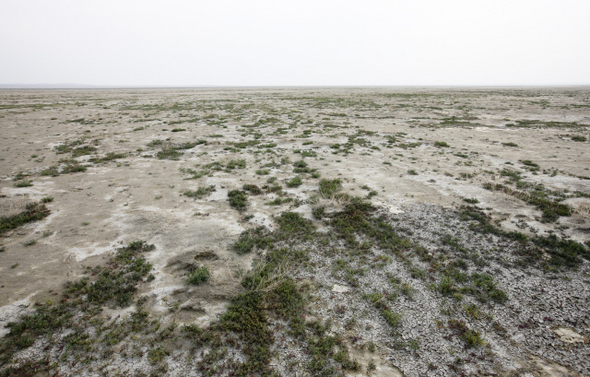 2002년 말라서 ‘소금 바닥’이 돼버린 차칸노르 호수.