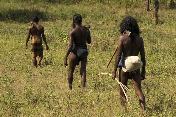 도끼를 어깨에 걸치고 다녀 ‘도끼족’으로 불리는 베다족 사람들이 사냥을 하러 숲으로 가고 있다.