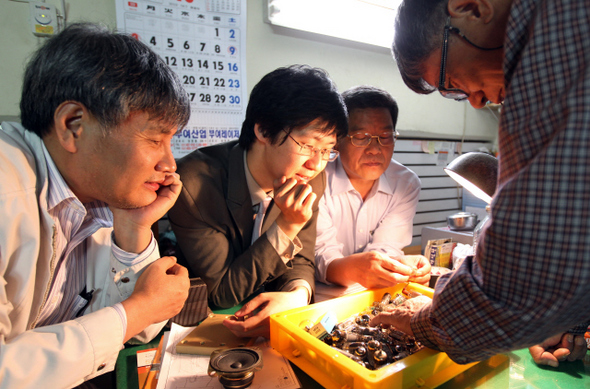 진공관 앰프로 음악을 즐긴다는 ‘한국진공관앰프자작동호회’ 모임 장소를 찾았다. 클래식한 음악감상실을 연상했지만 공구와 전선들이 널린 과학실에 가깝다. 진공관을 왜 만드느냐는 질문에 김영빈씨는 “뭐라 말로 표현하기는 힘들고 한번 들어보라”며 음악부터 들려준다. 음과 음 사이의 빈 곳이 울림으로 메워지는 것 같아 푸근한데, 더 깊은 차이를 알기는 어렵다. 그는 디지털은 홀수차 고조파가 나와 차가운 느낌이 나고, 아날로그는 짝수차 고조파가 나와 따스함이 느껴진다고 한다. 이해하기 어려워 다시 물었다. “고기를 숯불에 구워먹느냐 전기 플레이트에 구워먹느냐의 차이”라고 한다.