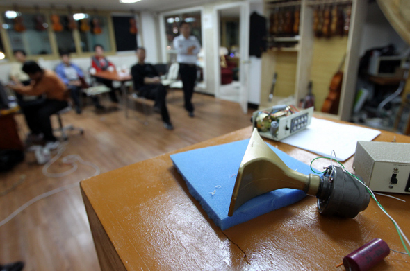 회원들은 매월 둘쨋주 토요일에 모여 서로가 만든 앰프의 소리를 들어본다.한겨레 정용일 기자