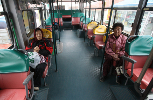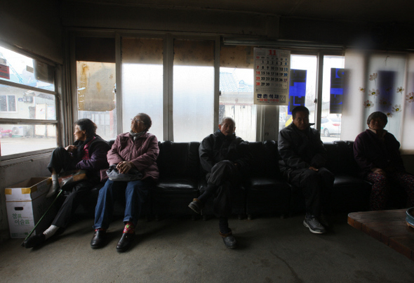 “이젠 좀 한가한게 병원 가야지.” 마을 할머니들이 버스를 타고 군 소재지에 나가는 목적은 치료가 대부분이다. “에구, 난 허리를 꿈쩍도 못하것어.” “난 무르팍이 아파 펴지도 못허것승께.” “늙으면 왜 이냥 아프나 몰러?” 서로 임실 가는 목적을 얘기하다 곧 서울 간 아들·딸 이야기로 돌아간다. 버스가 도착하고 기다리던 주민들이 차에 오르면, 조금이나마 북적이던 시골 버스터미널이 다시 한산해진다.
