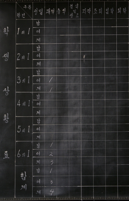 마지막 학생상황표. 6학년 3명이 졸업하면서 3학년 영희 혼자 남게 돼 폐교가 결정됐다.한겨레 김정효 기자 hyopd@hani.co.kr