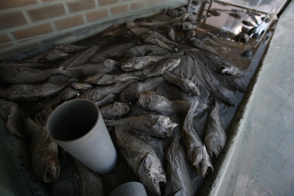 연평면에 있는 횟집 수족관의 물고기들이 썩어 냄새가 진동하고 있다.연평도=사진 한겨레 정용일 기자 yongil@hani.co.kr
