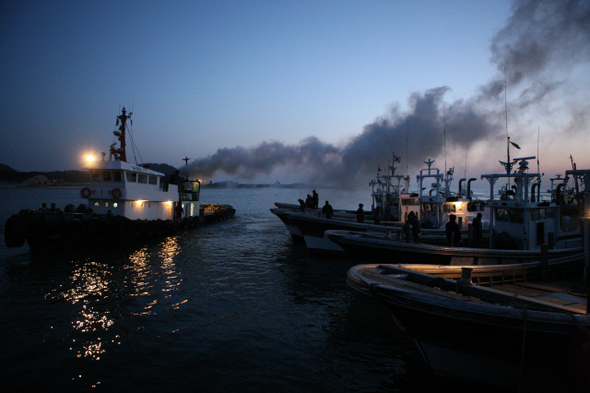 지난 3월9일 새벽 6시30분께 인천 옹진군 연평도 선착장에서 배들이 어구를 수거하러 출항하고 있다. 주민들은 어구를 12월 초에 거둬들였어야 하는데, 포격 사태로 어구 수거가 지연되는 바람에 큰 피해가 예상된다고 말했다. 연평도=사진 한겨레 정용일 기자 yongil@hani.co.kr