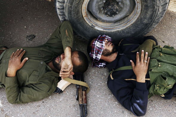 무아마르 카다피 리비아 국가원수의 축출을 명분으로 시작된 북대서양조약기구(NATO)의 폭격 4개월째. 하지만 카다피는 여전히 건재하고 오폭에 따른 민간인 희생자는 늘고 있다. 리비아 반군은 나토라는 하늘을 엄호해주는 강력한 세력을 얻었는데도 좀처럼 전세를 역전시키지 못하고 있다. 지지부진한 내전 상황에 반군 병사들은 지쳐만 간다. 정부군과 산발적인 교전이 벌어지는 전장에서 짧지만 달콤한 휴식을 취하는 반군 병사들의 모습은 그래서 더 애처롭다. 정부군이든 반군이든 전장의 병사들은 리비아 인민의 아들들이다. 이들은 언제쯤에나 고향으로 돌아가 가족과 행복한 일상을 즐길 수 있을까. 폭격이 시작된 이후, 잠시 망중한을 즐기는 반군 병사들의 모습을 <로이터>가 담았다.