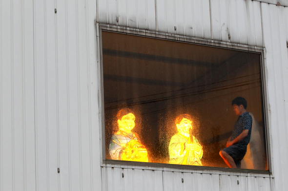 뼈대에 맞춰 한지를 한 장씩 붙이고 있다.(아래 사진) 한겨레21 정용일