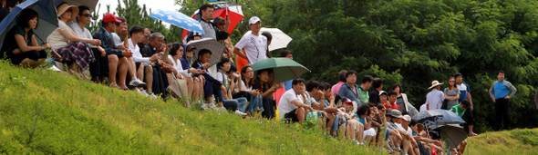 부모들이 한여름의 뙤약볕에도 아랑곳하지 않고 자녀들의 축구경기를 지켜보고 있다. 한겨레21 김경호