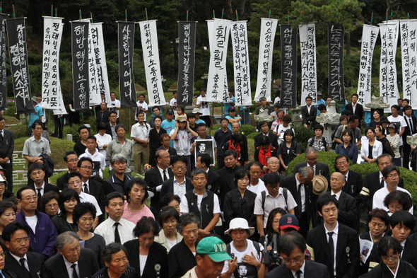 조문객들이 하관식을 지켜보고 있다. 한겨레21 박승화