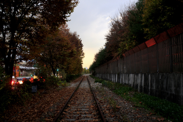 서울과 춘천을 오가는 경춘선이 달리던 철길 위로 낙엽이 수북이 쌓였다. (서울 노원구 공릉동)
