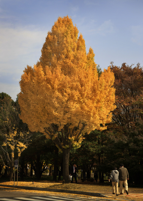 이르거나 늦은 단풍이 빛을 받아 어우러지며 환상적인 색채의 잔치를 벌이고 있다. (서울 서초구 양재시민의 숲)