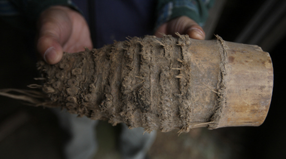 해금의 몸통으로 쓰는 대나무는 뿌리의 바로 위 첫 마디를 5년 이상 자연 건조해 사용한다.