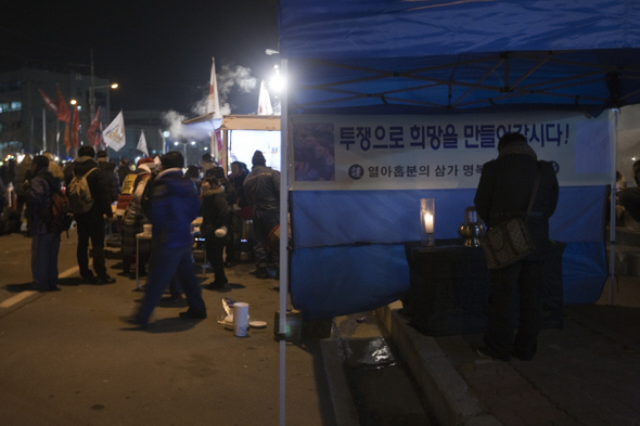 2009년 이후 지금까지 쌍용자동차 가족 19명이 죽었다. ‘와락 크리스마스’ 행사에 차려진 희생자 분향소.