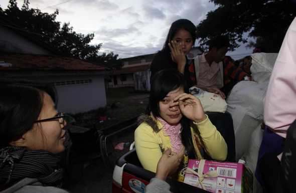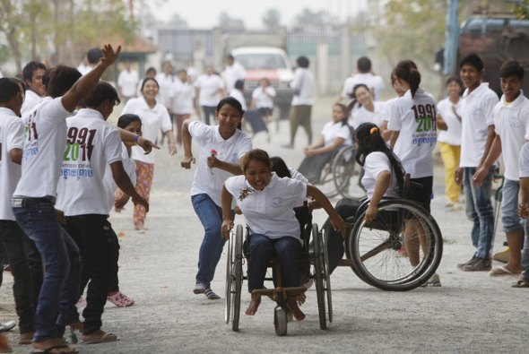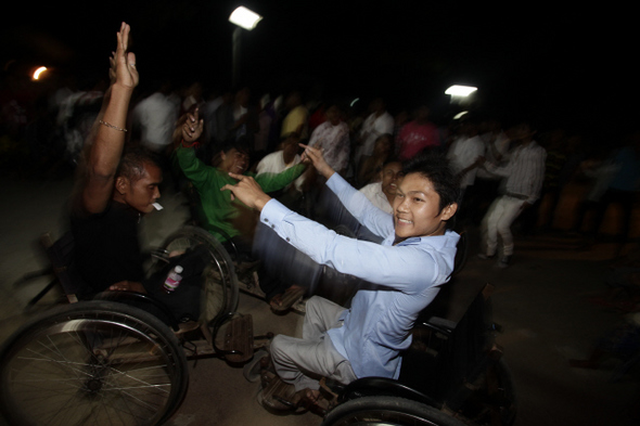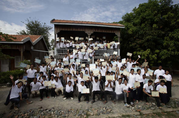 “솜 어쿤 치란, 록크루.”(정말 고마워요, 선생님.) 삼삼오오 무리를 지은 이들과 이미 트럭에 올라탄 채 마지막 인사를 나누는 이들의 인사말이 여기저기 둥둥 떠다녔다. 맞잡은 손바닥이 여러 겹으로 포개지며 서로의 체온이 섞였고, 금세 촉촉해진 눈물방울이 게으른 먼동을 부추겨 사방 사물들의 잠을 깨웠다. 350여 일. 짧지 않은 시간이었다. 이 기간에 함께한 친구들이 이별의 몸짓을 나누며 쌓인 정과 아쉬움을 주고받았다. 입학식을 치른 게 불과 며칠 전 같은데 어느새 긴 시간이 흘러 헤어져야 하는 날이 됐다. 어제까지 매일 되풀이되던 아침 인사가 오늘은 눈물 속에 치러졌다. 지난밤 늦은 시간까지 요란스레 벌어졌던 송별파티 때까지만 해도 환한 웃음이 가득했다. ‘반테아이 프리에브’(Banteay Prieb). 1991년 설립된 ‘비둘기센터’라는 뜻을 지닌 캄보디아의 장애인 재활학교가 지난해 12월 20주년 졸업식을 치렀다. 오랜 내전을 치른 캄보디아에 가톨릭예수회 구호기관인 JSC(Jesuit Service Cambodia)가 만든 이 학교는 지금까지 1500여 명의 장애인들에게 직업교육을 해왔다. 처음에는 지뢰 피해자들의 자립을 도우려는 기술교육센터로 출발했지만 지금은 신체 장애를 가진 학생들까지 범위를 넓혔고, 매년 100명 넘는 학생들이 입학해 전자수리·기계수리·재봉·농업기술 등의 1년 과정과 2년 과정의 목조각 기술을 배워 사회로 진출해왔다. 오랜 내전을 치르며 피폐해진 상황에서도 재활과 자립의 의지가 담긴 이들의 졸업식을 사진에 담았다.