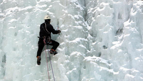 경기도 양주 가래비 빙벽장에서 동호인들이 빙벽타기를 즐기고 있다.