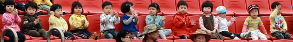 2012 청도 소싸움 축제를 찾은 어린아이들이 응원을 하고 있다.