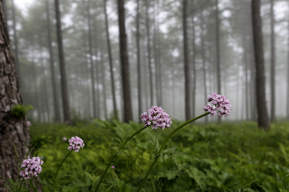 안개가 산을 덮자 평범해 보이던 녹색의 숲이 신비한 분위기로 바뀌었다.