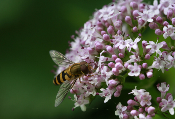 야생화가 흐드러지게 피면 벌들도 덩달아 바빠진다. 쥐오줌풀꽃에서 꿀을 따고 있는 벌.