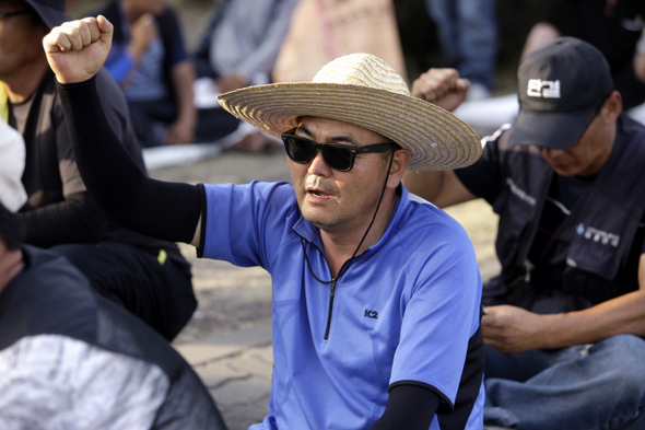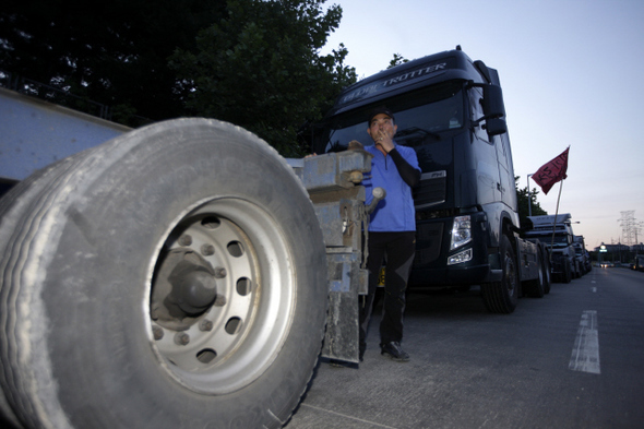 조합원 김영찬(54)씨는 30년 동안 화물차를 운전했다. 일주일에 2~3번 경기도 의왕의 화물터미널과 부산을 오고 간다. 하루 일손을 놓으면 45만원의 수입을 놓친다. 손해가 눈에 뻔히 보이는데도 김씨가 운전대를 놓은 건 운행을 하면 할수록 적자이기 때문이다.