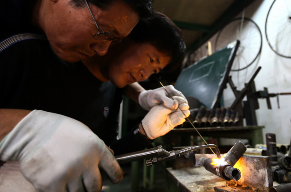 경남 양산엔 주문자가 프레임의 설계부터 용접, 도색까지 직접 배워 자기만의 자전거를 만들 수 있는 자전거 수제 공방인 ‘영사이클’이 있다. 이곳을 운영하는 유영순(68) 대표는 1964년 삼천리자전거에 입사해 1997년 명예퇴직한 뒤 이 공방을 열었다. 지금까지 거의 50여 년을 자전거만 만들어온 셈인데, 2003년에는 43년간 쌓아둔 프레임 제작 기술로 커스텀 바이크 카약(kayak)을 개발해 특허청 등록까지 했다. 이명박 정부 들어 4대강 사업으로 전국에 자전거도로가 깔리고 자전거 생산 기업에 대한 지원이 늘어나 자전거에 대한 관심도 커졌단다. 하지만 국내에서 자체 제작되는 자전거는 없어지고 해외 주문자상표부착생산(OEM)이나 고가의 수입 자전거만 늘어나 실질적으로 체감되는 혜택은 적다고 한다. 그는 이 공방이 이탈리아나 일본의 자전거 공방처럼 오랜 역사와 명성을 갖게 돼 수제 자전거의 대중화에 도움이 되길 바란다며 인류가 망하지 않는 한 자전거는 사라지지 않을 것이라는 말도 잊지 않는다.
