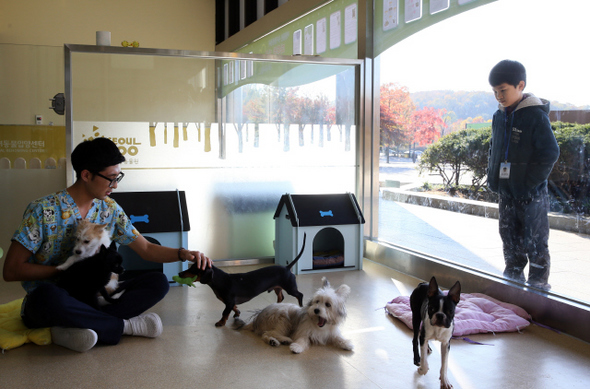 서울대공원 반려동물 입양센터에서 유기견들이 새 주인을 기다리고 있다. 사진 정용일 기자