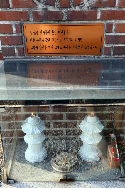 한국동물구조관리협회에서 안락사되는 유기견을 위해 분향소를 만들어놓았다. 사진 정용일 기자